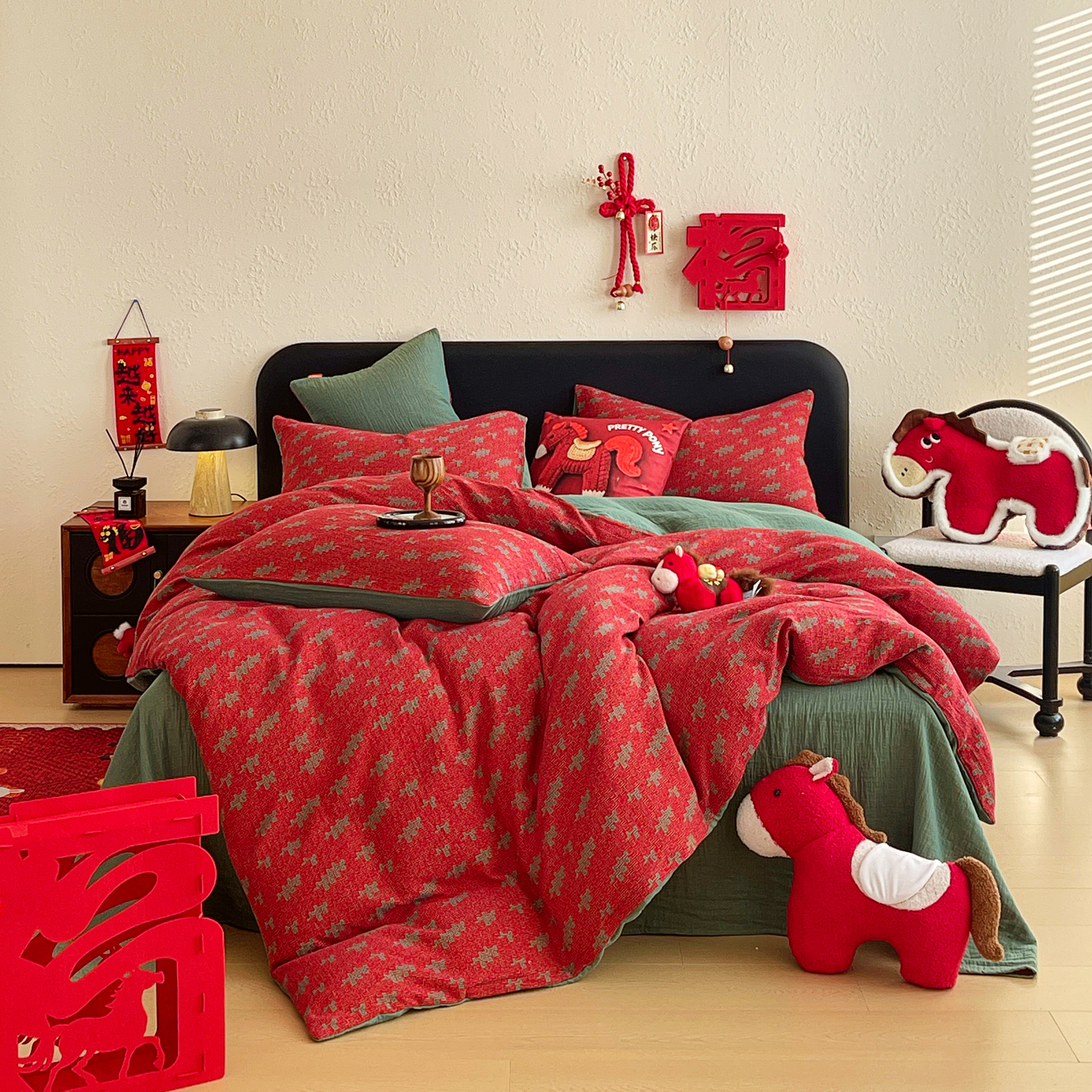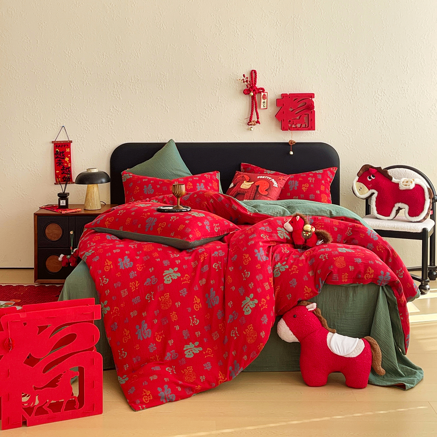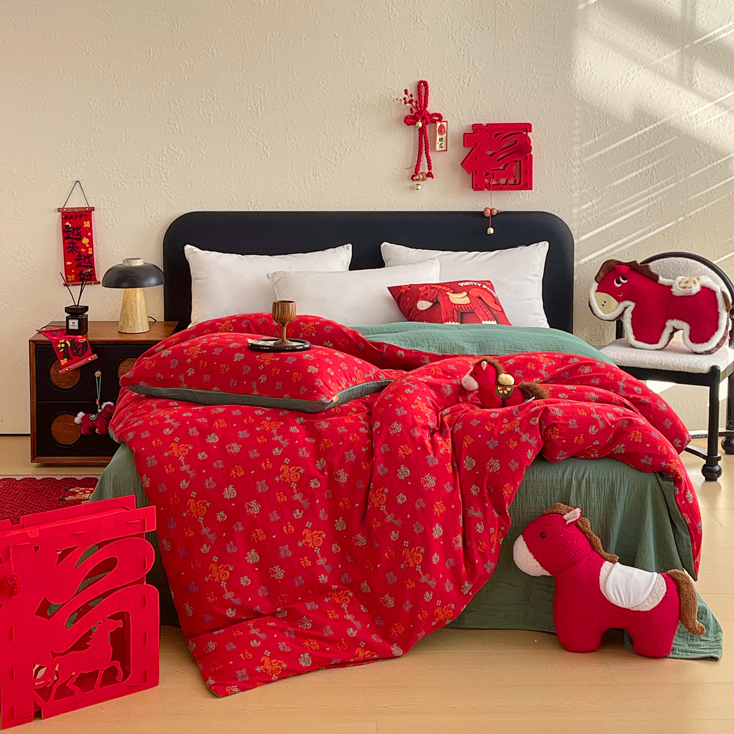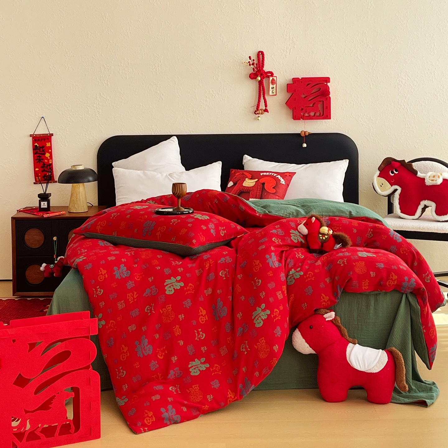 - 2026新款全棉色织双层纱提花百福系列拉链款-四件套