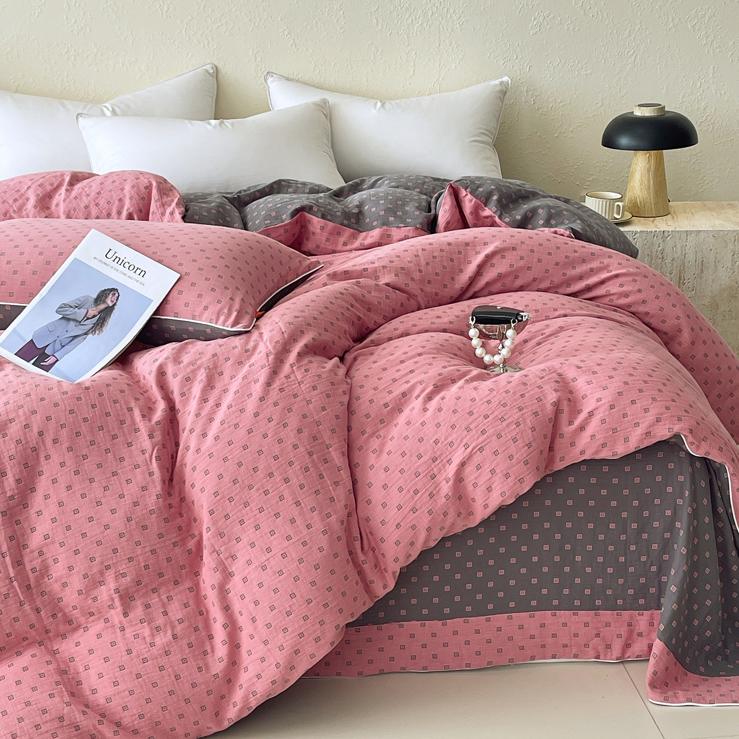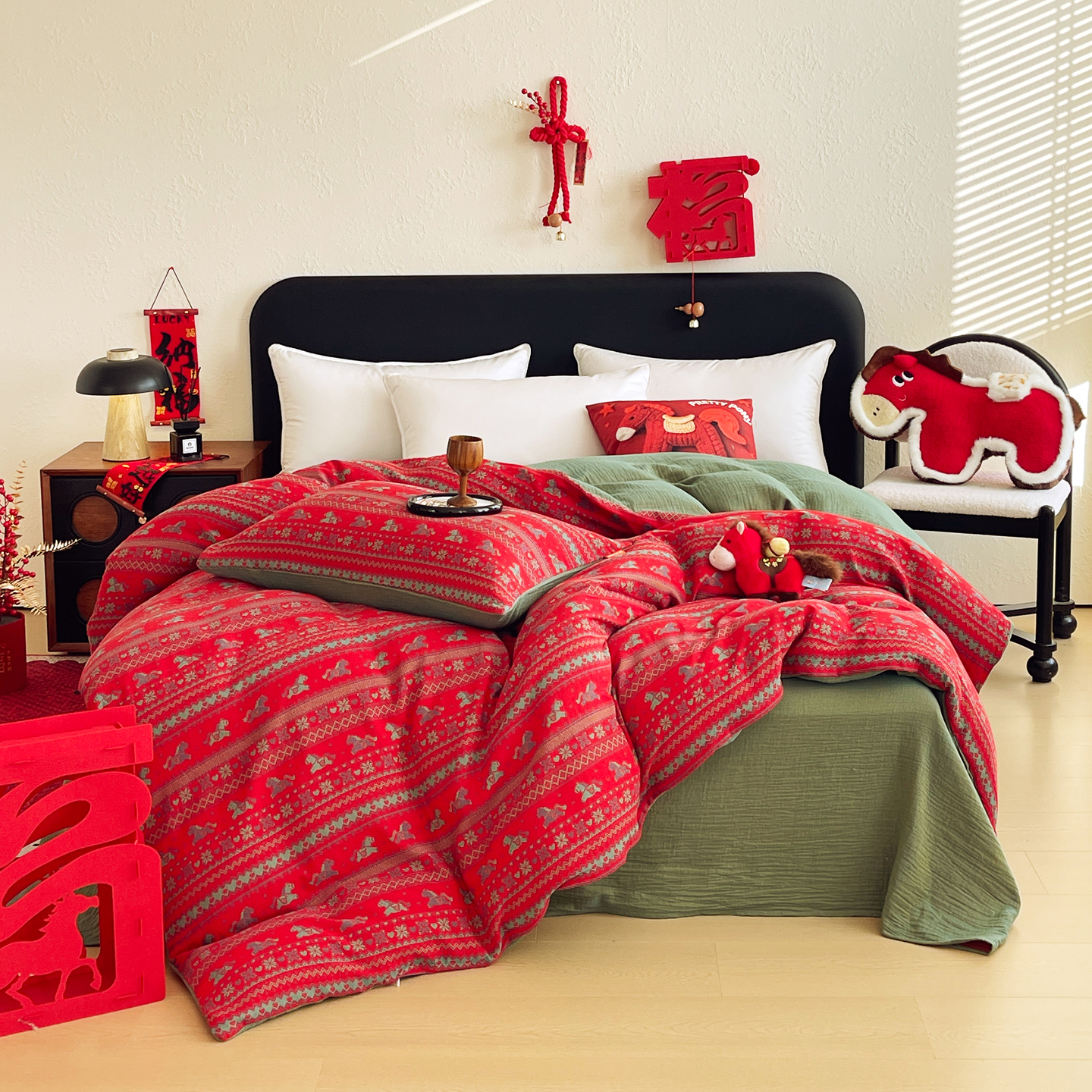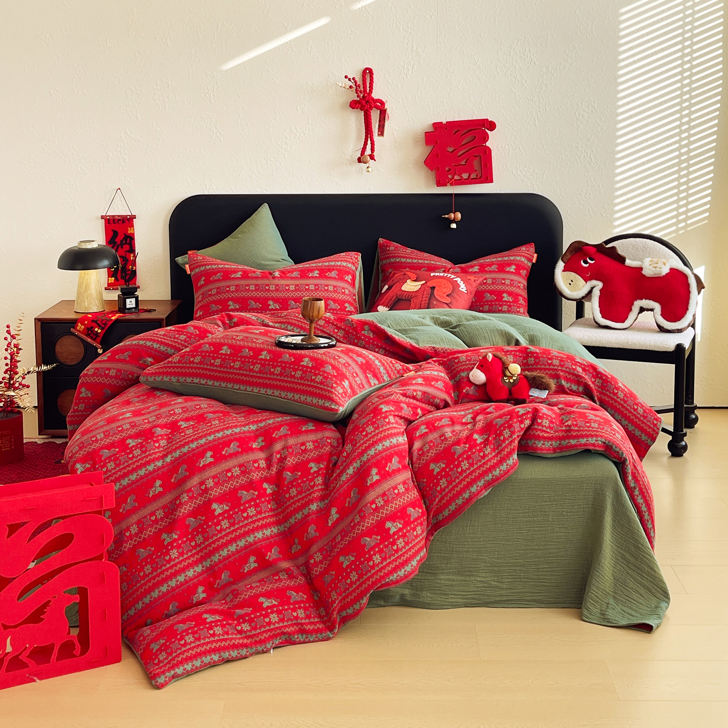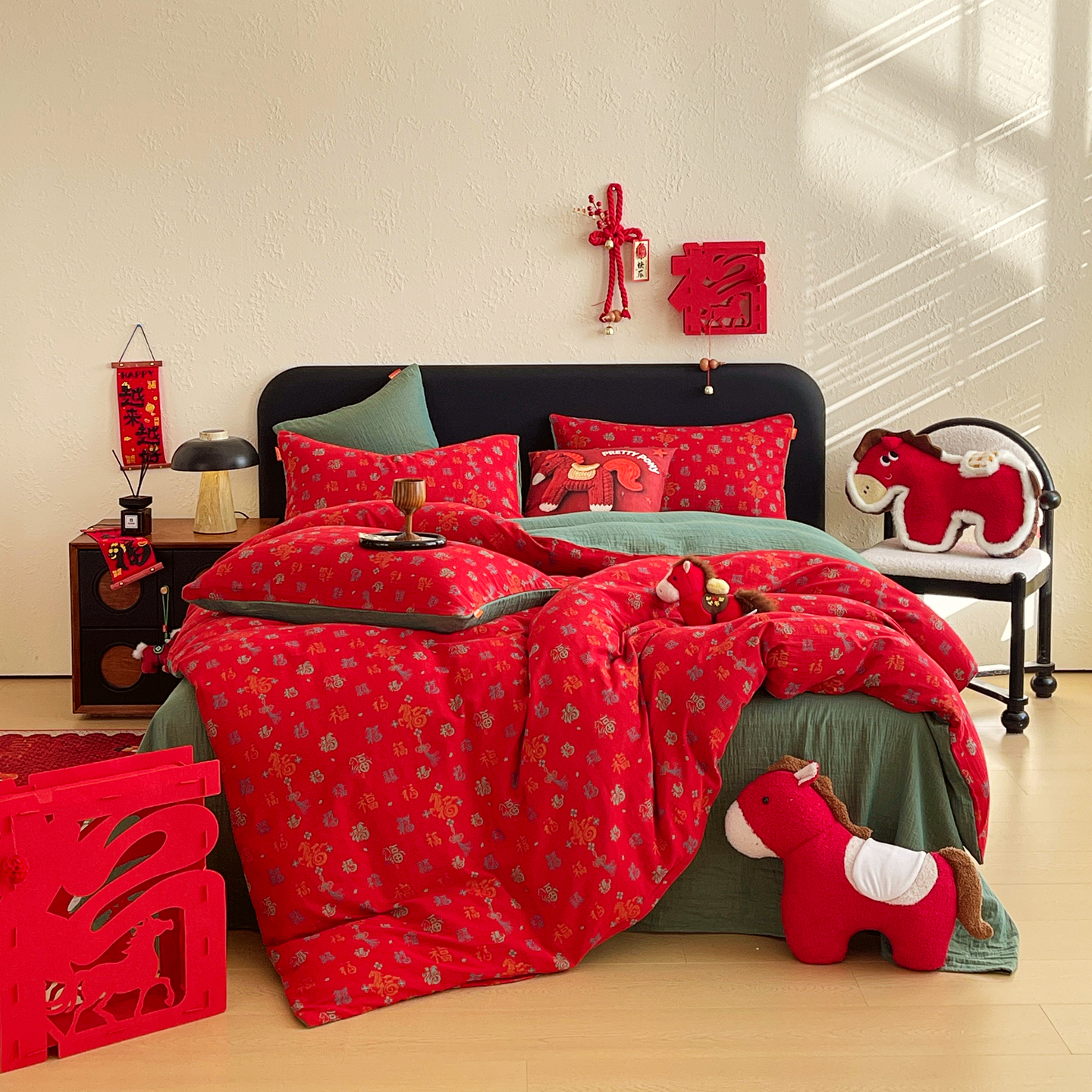 - 2026新款全棉色织双层纱提花百福系列拉链款-四件套