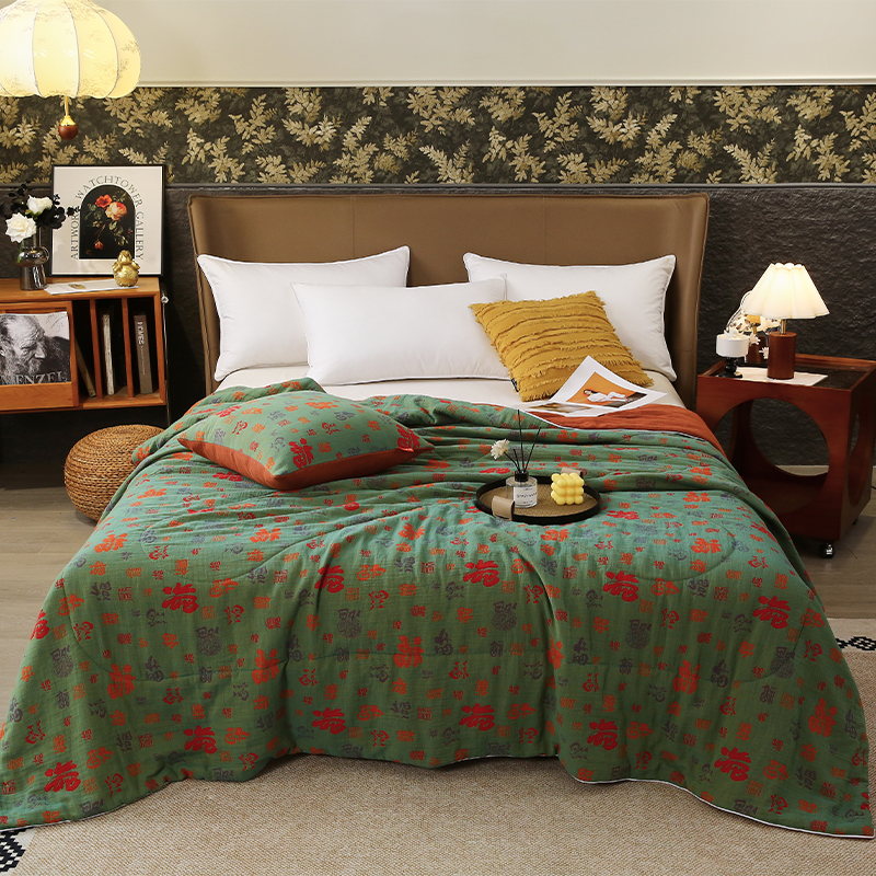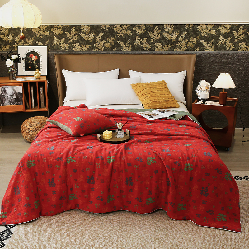 - 2026新款全棉色织双层纱提花百福系列拉链款-单被套