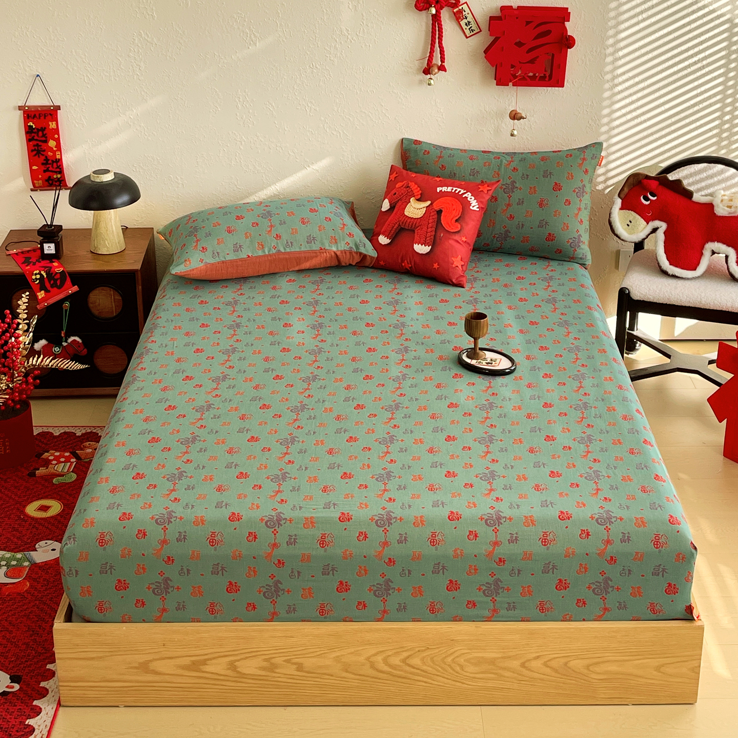 - 2026新款全棉色织双层纱提花百福系列拉链款-单床笠