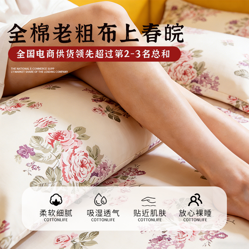 - 2026高端直播热卖非遗A类全棉老粗布加厚床单款三件套-普通款单被套