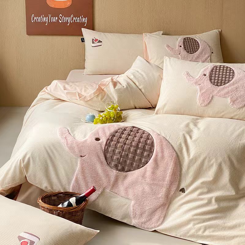- 2026春夏全棉萌趣气质大贴布系列四件套— 第一季 小粉象-卡其格