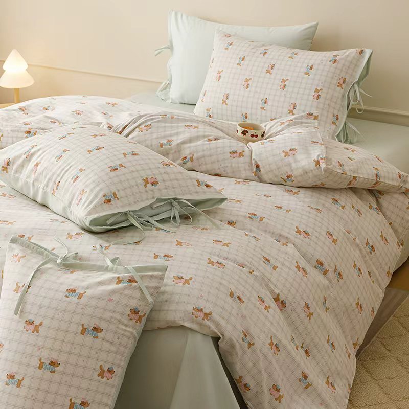 - 2026春夏全棉色织水洗棉萌趣小刺绣四件套系列 小狗多米
