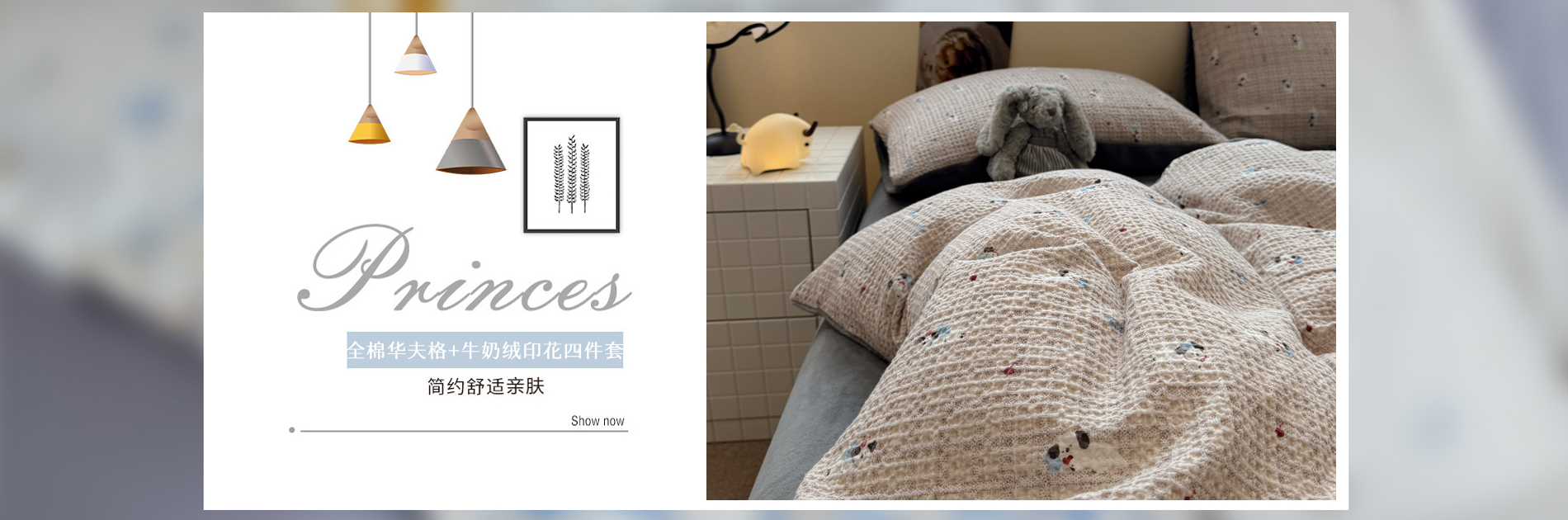 【2025新款全棉华夫格+牛奶绒印花四件套】