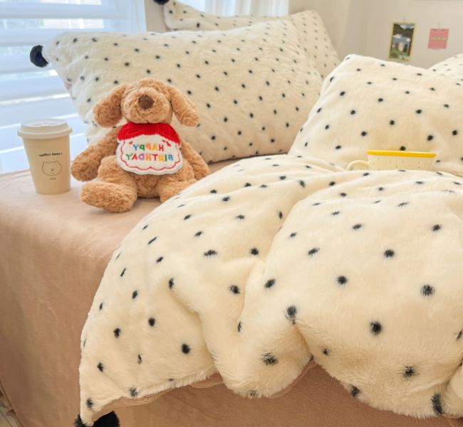 2025新款简约兔绒球球保暖舒适四件套-波点
