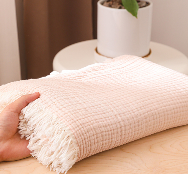 2025新款全棉100%棉四层纱流苏边毛毯子
