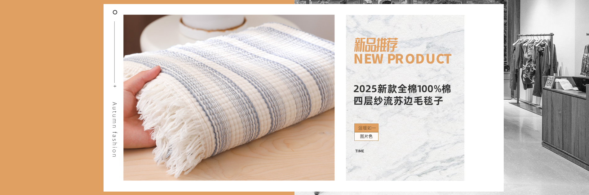 【2025新款全棉100%棉四层纱流苏边毛毯子】