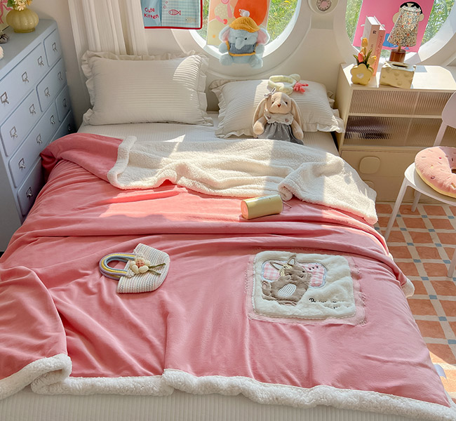 【2025新款加厚牛奶绒羊羔绒卡通贴布绣包边毛毯】