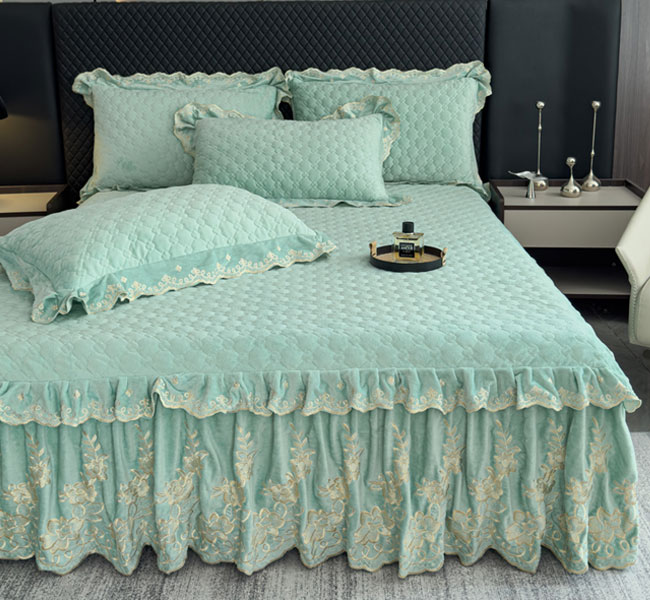 2024新款宝宝绒加厚保暖绒夹棉床裙三件套纯色套件刺绣公主风