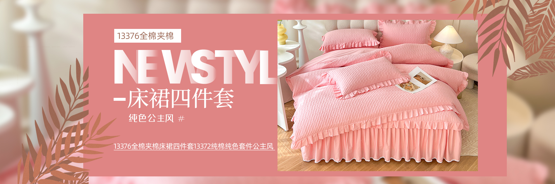 【13376全棉夹棉床裙四件套13372纯棉纯色套件】